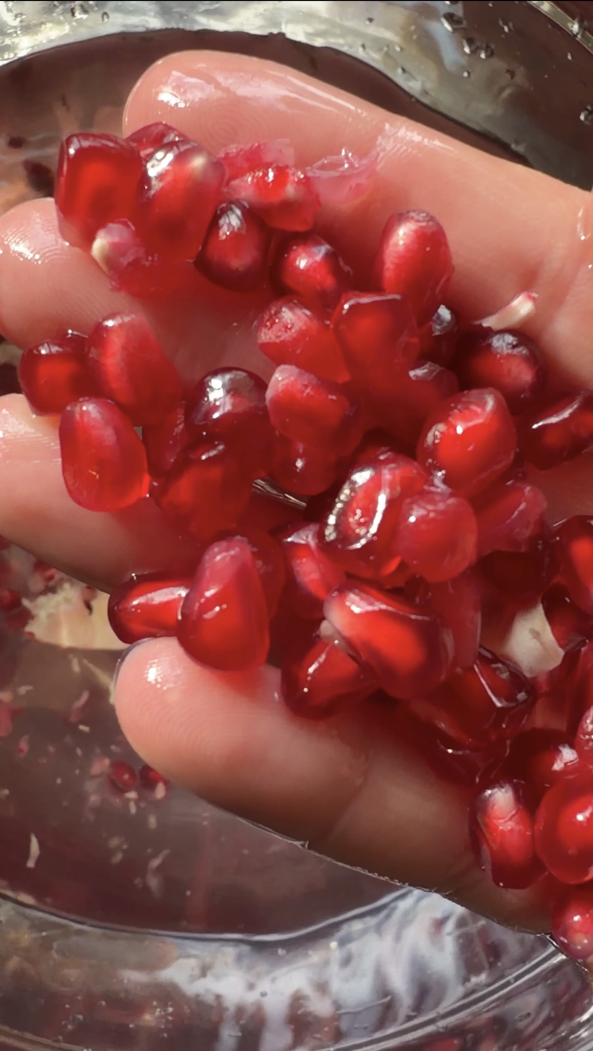In case you’re like me and enjoy eating a fresh pomegranate without ruining your shirt, then this post is for you! I recently stumbled upon Glow With Ella’s Instagram post on how to do this and have been using the “Water Method” ever since. I feel like it’s a kitchen secret or something (because I’m 31 years old and just learned it) but I’m here to break the silence because we do not gatekeep in the wellness world! So here it is- if you want some yummy pomegranate seeds without all the red juice splattered everywhere, my instructions are below. I also loveee talking about the health benefits of what we consume, so listed at the very bottom of this post are five pomegranate health benefits!