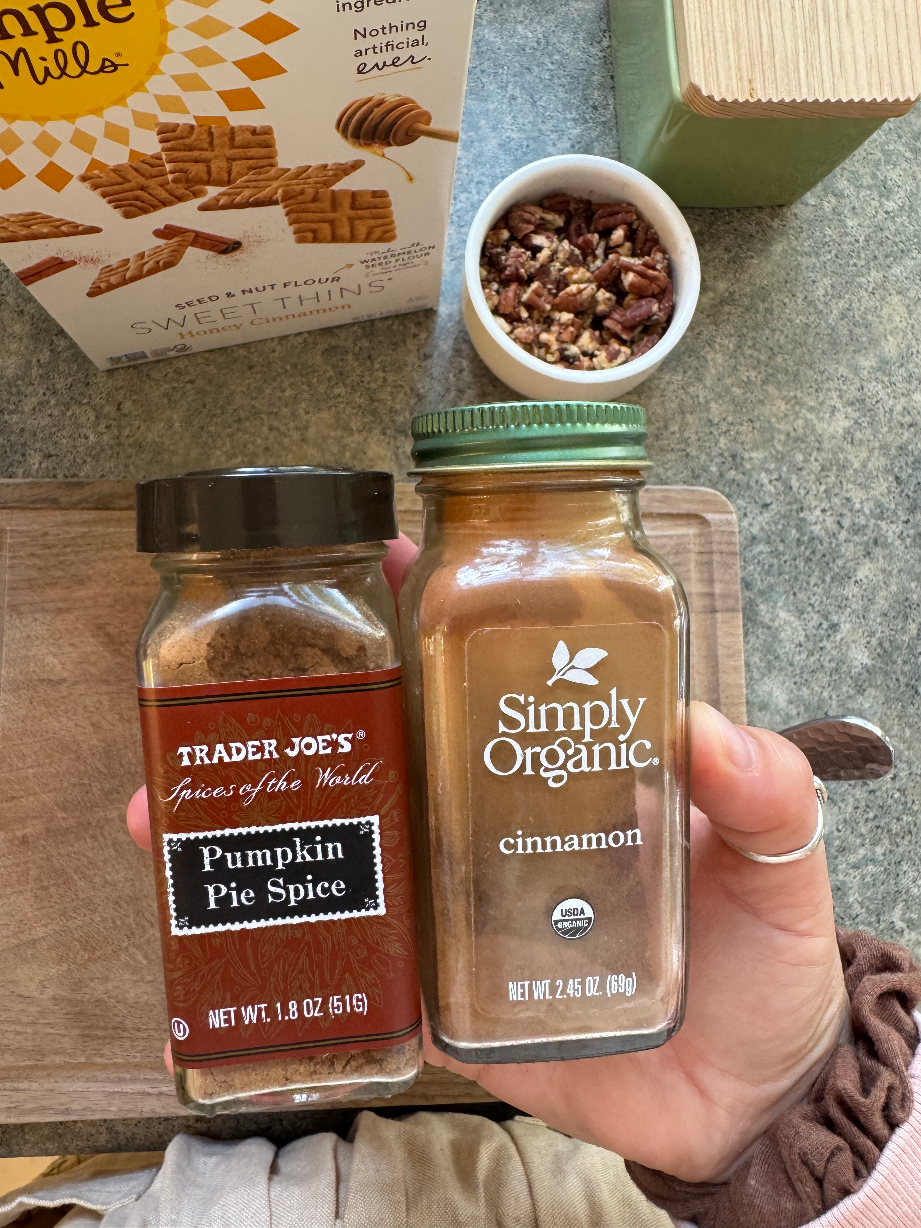 - I used a handful of roasted, salted pecans that I made the day prior and broke them up into smaller pieces. You can buy a bag of roasted pecans from the store or purchase a bag of plain pecans and roast/spice them yourself- they’re super easy! Let me know in the comments if you’d like a recipe for roasted pecans 🙂